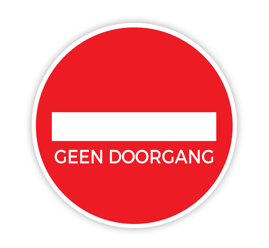 Vloersticker ‘geen doorgang’ om een logische looprichting te maken en voldoende afstand te houden.